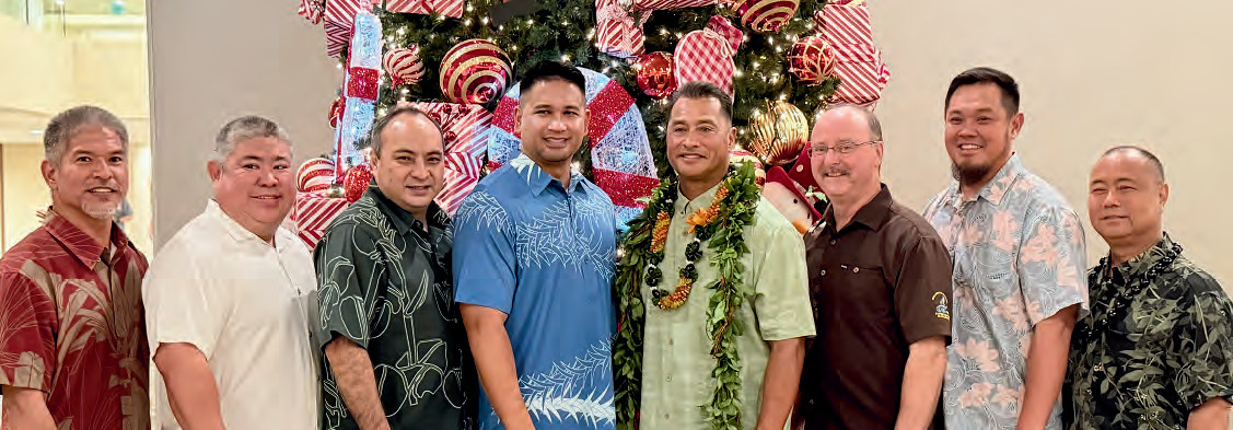 Agents and Training at the 2025 Oahu General Membership Meeting and Holiday Dinner. (l-r) Troy Taniguchi, Dean Kobashigawa, Ronden Numasaki, Westin Alcover, Sam Barrett Jr., Matthew Brady, Sheung Man Wong, Benji Panis.