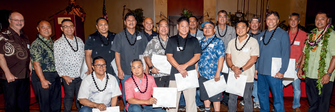 The Oahu General Membership Meeting and Holiday Dinner was held on Saturday, December 13, at the Hilton Hawaiian Village. President Matthew Brady led the Invocation, officially opening the evening’s dinner and entertainment. Newly appointed Business Manager Sam Barrett Jr. commenced his Business Manager Report sharing important Union updates. The Awards Ceremony followed, honoring members with 25 to 65 years of dedicated service.
