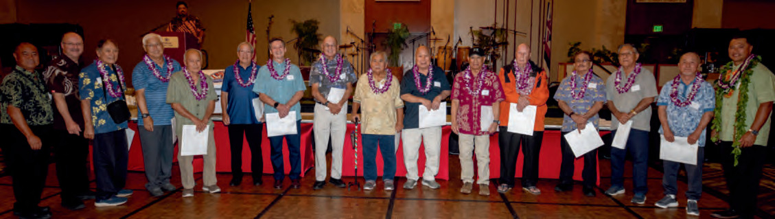 The Oahu General Membership Meeting and Holiday Dinner was held on Saturday, December 13, at the Hilton Hawaiian Village. President Matthew Brady led the Invocation, officially opening the evening’s dinner and entertainment. Newly appointed Business Manager Sam Barrett Jr. commenced his Business Manager Report sharing important Union updates. The Awards Ceremony followed, honoring members with 25 to 65 years of dedicated service.